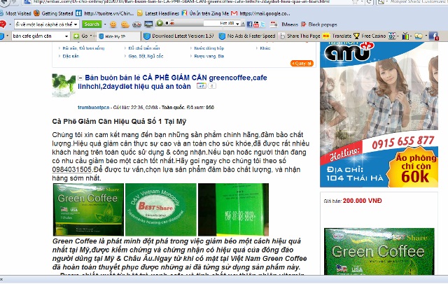 Chỉ cần vào mạng, kich vào mục “thuốc giảm béo”, sẽ hiện lên một tá các sản phẩm Green Coffe đều in đậm dòng chữ “Trà có tác dụng giảm cân nhanh chóng , bạn chỉ cần pha 1 gói cùng với 60-120ml nước ấm dùng trước bữa sáng 30 phút. Bảo đảm có công hiệu ngay trong 6 ngày đầu”.