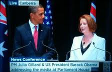 Chúng ta nhìn thấy sự bố trí phòng thủ mới của chúng tôi ở Úc. Những sáng kiến mà Thủ tướng Úc và tôi đã công bố hôm qua sẽ giúp đưa quân đội của hai nước chúng ta đến gần nhau hơn. Chúng ta sẽ có những cơ hội mới để huấn luyện với các đồng minh và đối tác khác, đến từ Thái Bình Dương đến Ấn Độ Dương. Và điều này sẽ cho phép chúng ta phản ứng nhanh hơn đối với đủ loại thách thức, kể cả các cuộc khủng hoảng nhân đạo và hoạt động cứu trợ nạn nhân của thảm họa.