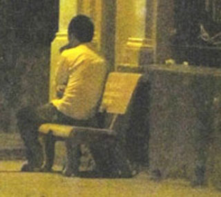 Một "trai bao" ngồi đón khách tại góc đường.