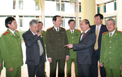 | Phó Thủ tướng Nguyễn Xuân Phúc và Bộ trưởng Bộ Công an Trần Đại Quang trao đổi với các đại biểu dự hội nghị. Ảnh: Chinhphu.vn |