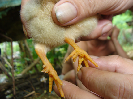 Thâý 2 chân con gà con 6 móng đêù màu cam cả,chăć chăń là đã bị nhiêm̉ chât́ độc màu da cam của Mỹ ngụy giôńg như danden321,tinhusa nói rôì.