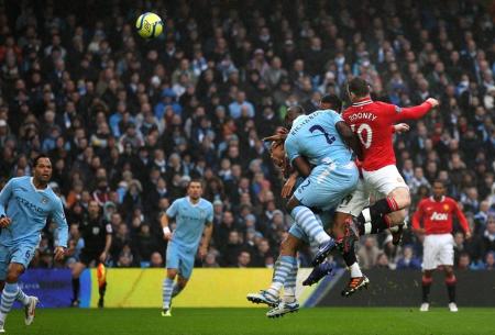 Phút thứ 10, từ hành lang cánh phải, Valencia có quả tạt sở trường vào vòng cấm cho Wayne Rooney bật cao đánh đầu đưa bóng vào góc xa không cho thủ thành số 2 của Man City một cơ hội nào để cản phá.