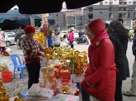 Các hàng bán đồ lễ rất đắt hàng. Những cành lộc được rất nhiều ngừơi đi lễ lựa chọn để sau khi thắp hương lễ phật còn có thể mang lộc về cắm lên bàn thờ lấy may