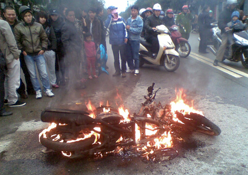 Xe Nouvo cháy do quên đậy nắp bình xăng