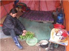 Bà Nguyễn Thị Thương trong căn lều dựng tạm ở phần đất bị cưỡng chế.
