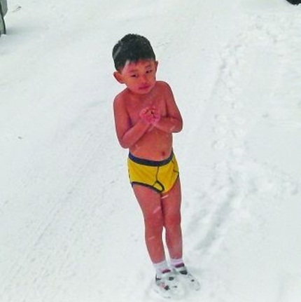 Xót xa bé trai 4 tuổi bị bố bắt mình trần trong tuyết