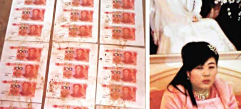 Con quan rải tiền làm thảm trong lễ cưới