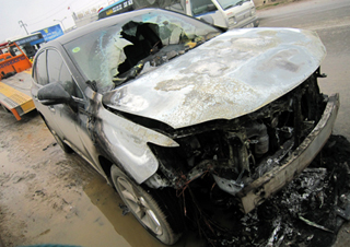 Xe Lexus cháy rụi khi đang chạy trên đường