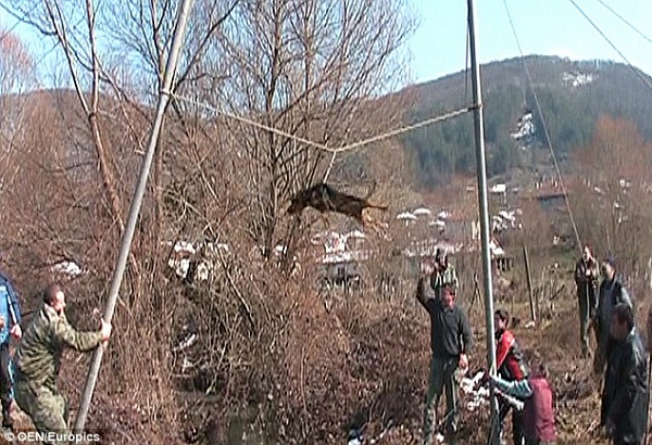 Những con chó sẽ bị treo ngược trên sợi dây thừng vắt ngang một con sông. Mọi người sẽ kéo sợi dây thừng cho đến khi chú chó bị kéo căng, họ sẽ lắc mạnh để nó rơi xuống nước. Khuôn mặt hoảng sợ đến tột độ của chúng khi đang bị treo lơ lửng, bất lực, đối nghịch với sự hò reo, cổ vũ của đám đông ở dưới.