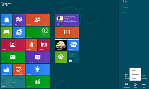 Cách tắt hệ điều hành Windows 8 khi không có nút Start
