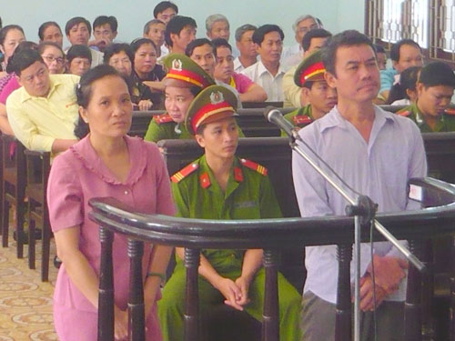 Bị cáo Huỳnh Văn Quyên (bìa phải) và bị cáo Lê Thị Tám tại phiên tòa sơ thẩm lần 2. Ảnh: Ca linh