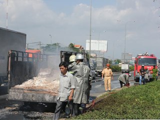 Xe tải bỗng dưng... bốc cháy