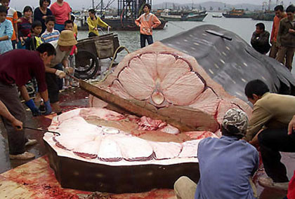 Cảnh tượng xẻ thịt "quái vật" khổng lồ biển cả