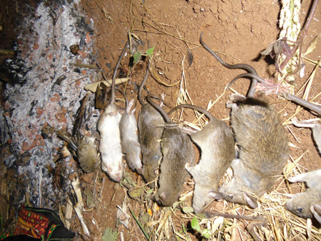 Hơi ấm tỏa ra, chúng tôi ăn, rồi trò chuyện và chìm trong giấc ngủ. Sáng sớm, khi tiếng chim đã cất lên,k hi tiếng dế đã không còn, chúng tôi trở về khi mặt trời đã ló ra khỏi đỉnh núi xa xa. Một chuyến đi săn, hơn 60 con chuột béo ngậy. Vì có “cán bộ” nên Của bảo sẽ không bán, mà sẽ làm bữa thịt chuột để uống rượu. Những con chuột được làm sạch lông, được nướng dưới ngọn lửa thơm phức.