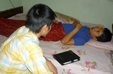 Hơn một ngày nằm trên giường bệnh, anh Phạm Văn Trọng ở xă Đông Phương Yên (Chương Mỹ, Hà Nội) vẫn chưa vơi nỗi sợ hăi sau đêm hỗn chiến ở bờ đê sông Đáy. Người thân trong gia đ́nh cũng chưa hết bàng hoàng.