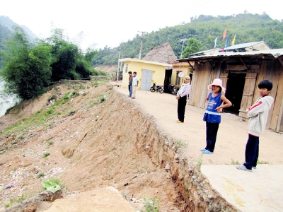 Càng ngày, ngôi nhà càng chênh vênh. Chỉ cần mưa lớn kéo dài hơn 3 ngày, kết hợp lũ thượng nguồn đổ xuống, ngôi nhà có thể bị cuốn trôi bất cứ lúc nào. Cách đây 3 năm, huyện Tây Giang có quyết định di dời thôn TĐC Alua và Kala nằm chênh vênh bên ḍng A Vương.