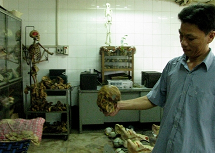 “Đừng sợ!” - chúng tôi đă dặn nhau như vậy khi tham quan khu đặt tiêu bản sống của bộ môn Giải phẫu bệnh Trường Đại học Y - Dược TP.Hồ Chí Minh. Thế nhưng khi cánh cửa pḥng thực hành giải phẫu của sinh viên mở ra, mọi “căn dặn” đều trở nên vô nghĩa. Lần đầu tiên trong đời tận mắt nh́n thấy mấy chục xác người nằm xếp hàng trên những bàn mổ, chúng tôi ai nấy mặt mày xây xẩm, toàn thân bỗng nhiên lạnh toát. Ấy vậy mà anh Đỗ Thành Tài - người dẫn đường cho chúng tôi - vẫn cười tươi: “B́nh tĩnh đi hai chú em. Có ǵ đâu mà sợ dữ vậy?”.