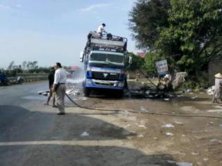 Nghệ An: Xe tải đang chạy trên quốc lộ 1A thì bốc cháy