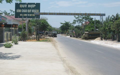 Khoảng 11-12h trưa, QL48 tại thị xă Thái Ḥa vắng bóng người qua lại. Con đường vào huyện Quỳ Hợp đặc biệt không có xe lưu thông.