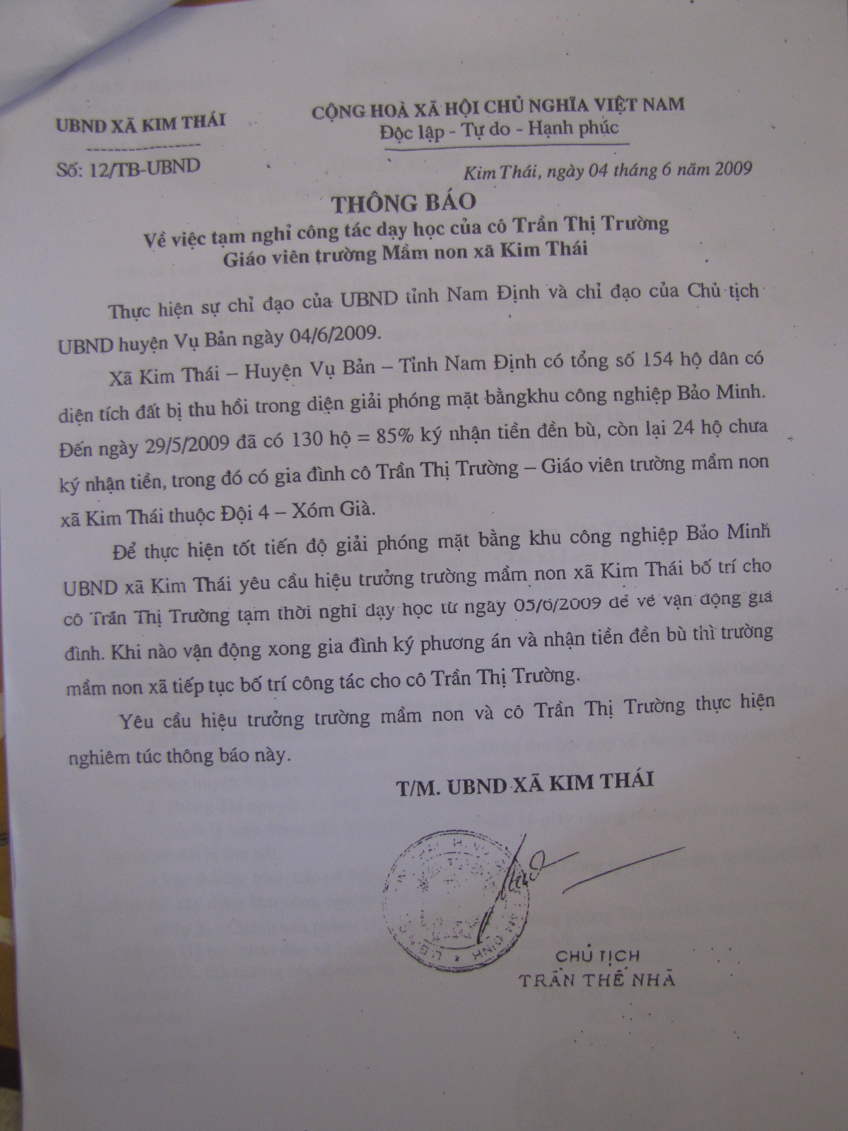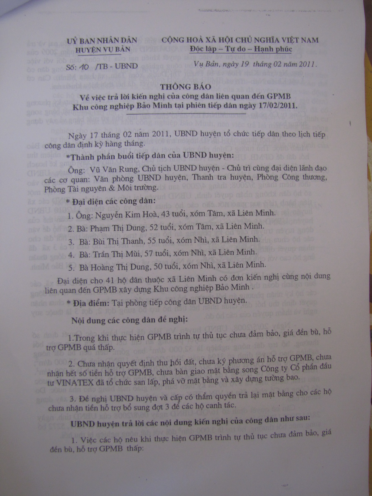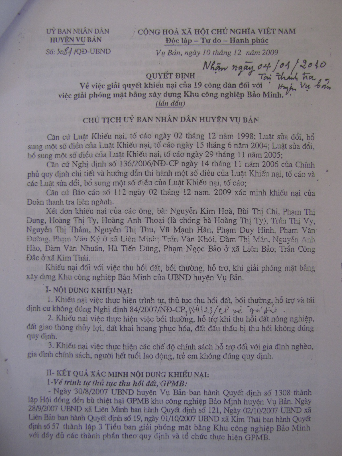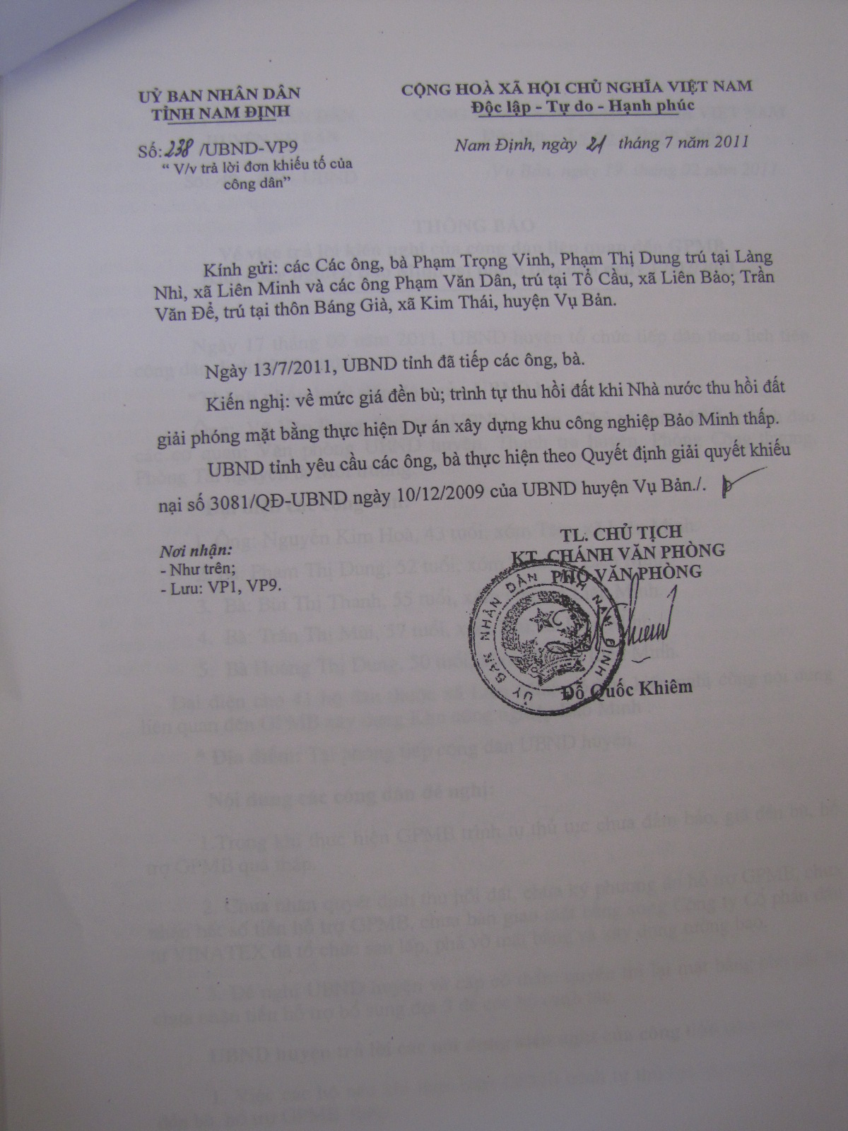Nam Định - Cần kiểm tra khẩn cấp một số văn bản liên quan đến dự án Khu công nghiệp Bảo Minh!