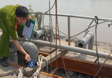 Cảnh sát Môi trường trong một lần khám nghiệm hiện trường xả thải của doanh nghiệp