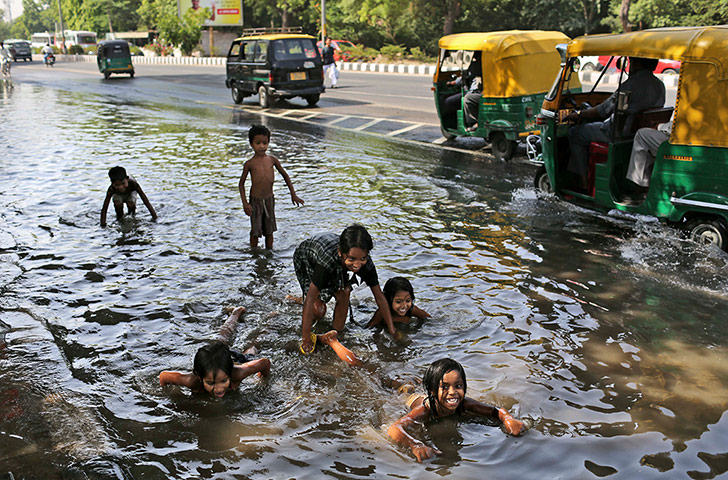 TG 24 giờ qua ảnh: Trẻ em tắm trên phố ngập nước