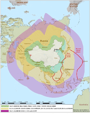 Bản đồ TQ nới rộng Thái B́nh Dương với hai ṿng đai pḥng thủ.