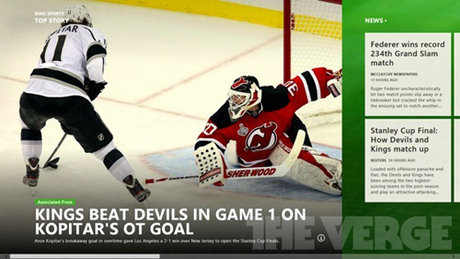 Ứng dụng Bing trên Windows 8 Release Preview cung cấp những thông tin thể thao nhanh chóng - Ảnh: The Verge.