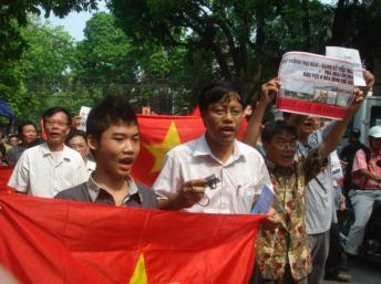 Tiến sĩ Nguyễn Xuân Diện trong một cuộc biểu t́nh chống Trung Quốc