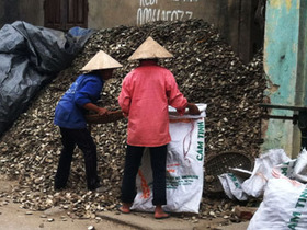 Đi cả làng mới thấy 1 đống sắn phơi mốc meo và bẩn.