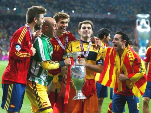 Italia, hay cả thế giới t́m một cuộc lật đổ trước Tây Ban Nha, nhưng bất thành. Nhà vô địch Châu Âu đương thời có quá nhiều phẩm chất vượt trội, về cả con người lẫn lối chơi để chiến thắng. Họ là đội tuyển của thời thế, của bóng đá đẹp, của những cá nhân vĩ đại mà khiêm nhường.