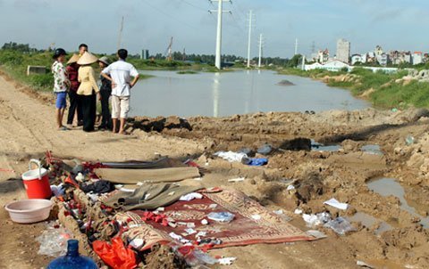 Đến 22h30, người dân tỏa ra cánh đồng nơi các công trường đang thi công thì phát hiện nhiều đôi dép để ở trên bờ. Sau khoảng hơn nửa tiếng mò mẫm dưới các hố nước công trường quanh đó, người dân đã vớt được xác của 4 em nhỏ lên bờ.