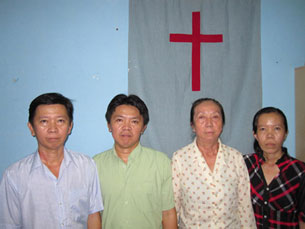 File Photo. Gia đình chị Vương Thị Viếng (thứ 3 từ trái)tại Hội Thánh Tin Lành, Thái Lan.(tháng 4/2012)