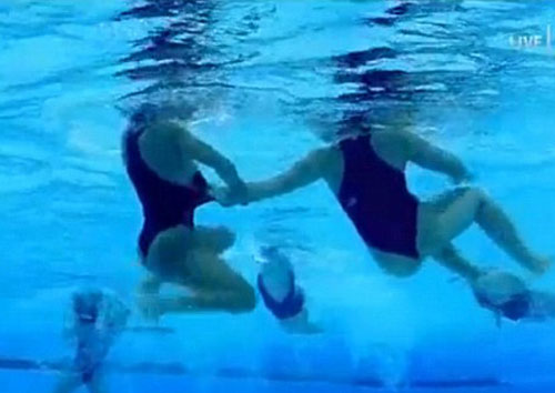 VĐV bóng nước kéo áo làm lộ ngực đối thủ