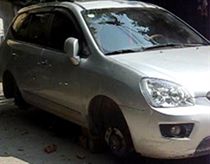 Hai xế hộp bị tháo 4 bánh trong đêm