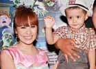 Cà-phê được mẹ Thanh Thúy diện đồ bảnh bao dự buổi ra mắt phim. Hai mẹ con chụp ảnh cùng danh hài Hoàng Mập.
