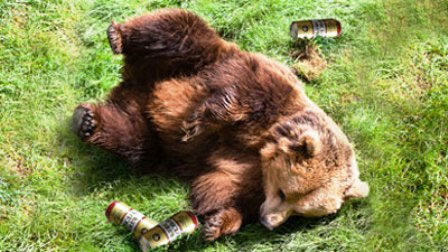 Gấu uống trộm 100 lon bia, say lăn say loc