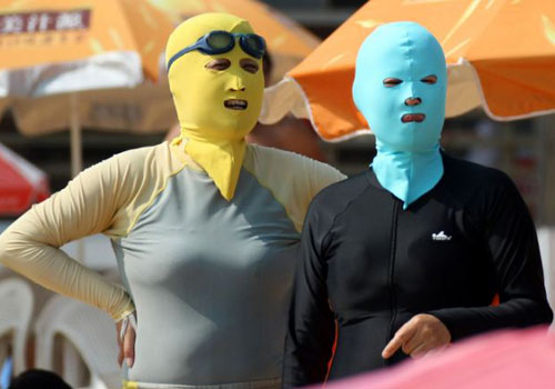Rộ 'mốt' đeo mặt nạ tắm biển