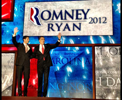 Ông Mitt Romney và ông Paul Ryan tại Đại hội đảng Cộng Hòa ở Tampa, Florida ngày 29 tháng 8 năm 2012. Courtesy mittromney.com