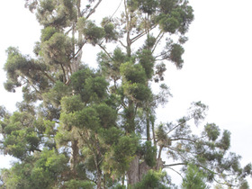 Xung quanh cây thủy tùng khổng lồ mà Y Mion canh giữ cũng đã xuất hiện những câu chuyện ly kỳ. Hôm chúng tôi vào rẫy để được tận mắt thấy “cây cổ”, quanh gốc cây cỏ mọc um tùm ngang thắt lưng, cây thủy tùng có đường kính gốc hơn 2 mét, ngọn đã bị sét đánh gãy, giữa thân đã bị sâu tạo nên nhiều lỗ hổng nhưng cây vẫn phát triển, cành lá um tùm xanh tốt.