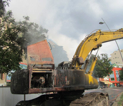 Xe cuốc bất ngờ bùng cháy tại kênh Nhiêu Lộc