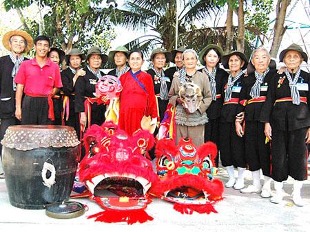 Dịp 2/9 vừa qua, du khách đến cồn Phụng, Bến Tre đã phải trầm trồ không ngớt trước đội lân có một không hai: Toàn bộ 16 thành viên của đội lân đều là những cụ bà trên dưới 70 tuổi.