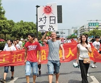 Dân Trung Quốc biểu tình chống Nhật Bản, mang theo khẩu hiệu đòi tuyên chiến với Nhật Bản