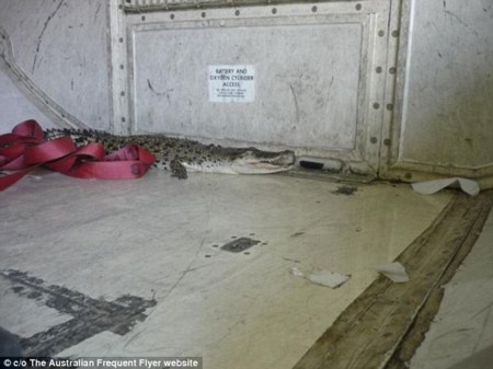 Cá sấu sổng chuồng ḅ lổm ngổm trên máy bay