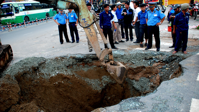 "Hố tử thần" khủng do vỡ ống thoát nước
