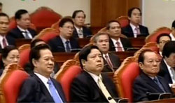 Thủ tướng Nguyễn Tấn Dũng (ngoài cùng bên trái) trong ngày bế mạc Hội nghị TW 6.