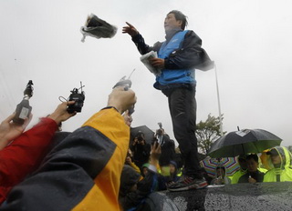 Dù bị lực lượng cảnh sát ngăn cản, các nhà hoạt động Hàn Quốc vẫn t́m cách thả những quả bóng bay mang hàng chục ngh́n tờ rơi chống Triều Tiên xuống khu vực biên giới giữa hai nước. Đây rơ ràng là một hành động thách thức đối với Triều Tiên bởi trước đó, B́nh Nhưỡng từng tuyên bố sẽ tấn công vào biên giới Hàn Quốc nếu các nhà hoạt động nước này thả tờ rơi xuống lănh thổ của họ.
