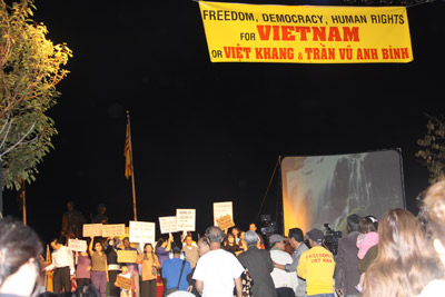 Nhạc sĩ, MC Việt Dzũng, trưởng ban tổ chức cho biết, “Trọng tâm của tối hôm nay là theo dõi phiên tòa. Cuộc vận động trả tự do cho Việt Khang và Trần Vũ Anh Bình được sự ủng hộ vững mạnh từ phía chính phủ Hoa kỳ cũng như Quốc Hội. Bên văn phòng Ngoại Trưởng Hillary Clinton cũng đã biết về vấn đề này và sẽ có phần lên tiếng chính thức sau vụ án.”