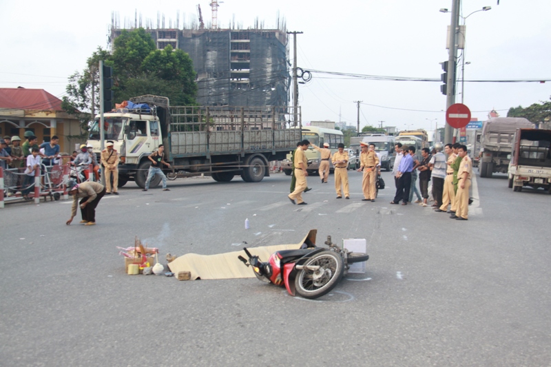 Dừng đèn đỏ, một người đàn ông bị xe tải đâm chết