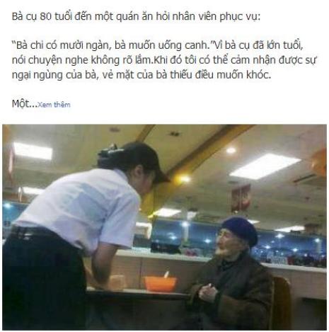 Câu chuyện cảm động 180 chữ về bà lão 80 tuổi và nhân viên phục vụ